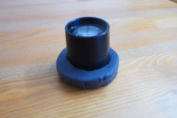 Para cámaras DSLR y DSLM, necesita hacer una tapa para mantener el cristal en su lugar. Cámaras compactas podrás probablemente acaba de poner en el objetivo. Si el diámetro de los vasos de la hoja es grande poner algunos pequeños puntos de sugru o pegamento caliente en el interior del tubo.