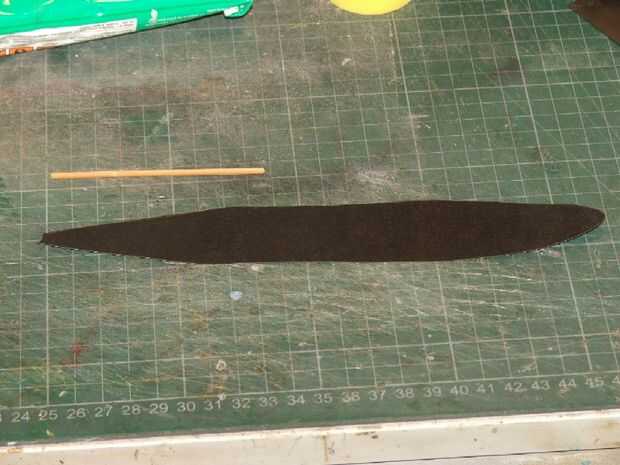 Usando tijeras o bisturí cortar la forma. Al conseguir uno de sus pinchos de kebab delgado y cortado a 1/3 la longitud de la pluma y a un lado para más tarde.