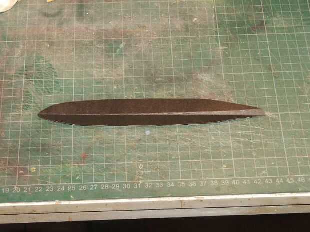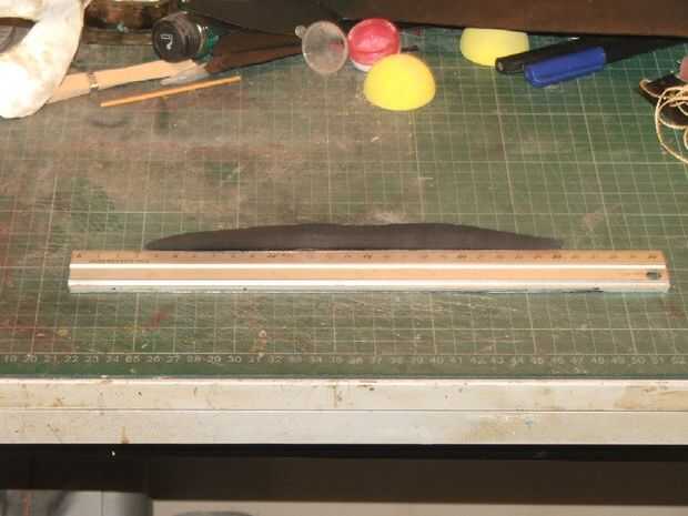 Me parece más fácil usar una regla para guía de los pliegues. Empezar haciendo un pliegue ligeramente fuera de centro por aproximadamente 1/16 de pulgada o 1.5 mm, luego voltee la pluma y hacer un segundo doblez hacia atrás de centro sobre la misma cantidad que el primero. Esto le dará un conjunto de 'Z' en forma de pliegues a lo largo de la longitud de la pluma. Esto añade rigidez y dan la impresión de la espina dorsal de la vaina.