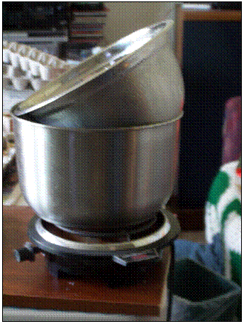 dentro de otra olla o recipiente con aproximadamente 1" de agua en la parte inferior. La parte inferior de la taza interior cera olla debe
