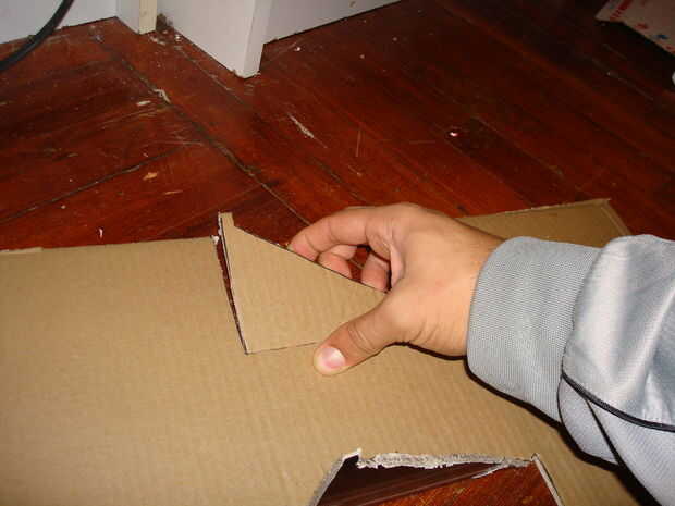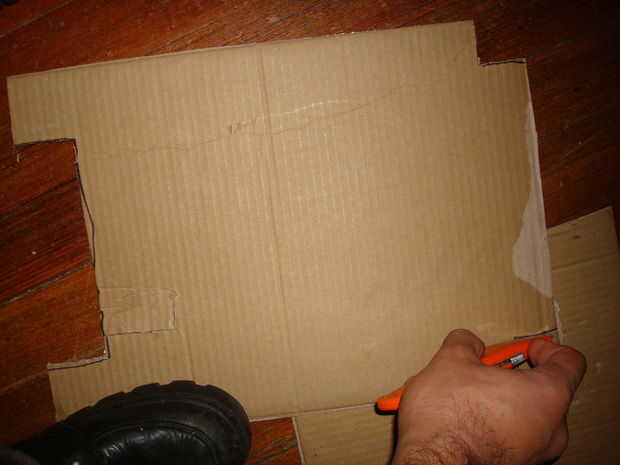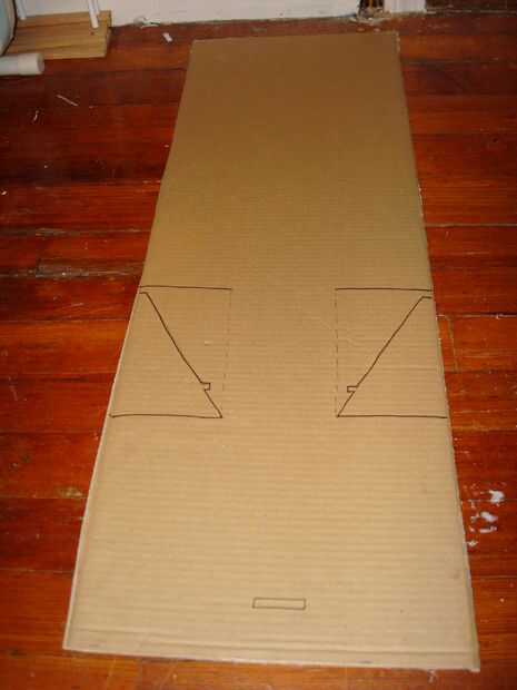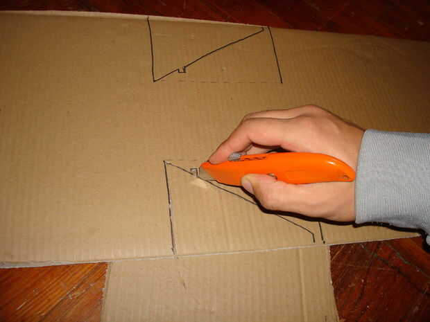 * Marque y corte las líneas que representan lo que se convertirá en su estructura de soporte de rampa de caja de pizza. Doblarlas vertical al corte.