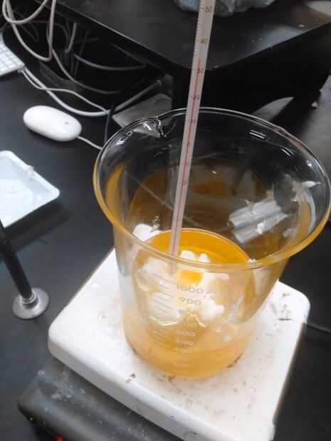 Al escoger qué ingrediente se va a utilizar para la base, es importante revisar qué aceites o grasas (ácidos grasos) producirá el mejor resultado. Por ejemplo si se utiliza el ácido linoleico tiene propiedades como el acondicionado o tienen una sensación sedosa a él. También es posible poner ingredientes adicionales a tu mezcla. En la etapa donde hablé de los cálculos se tendrá que para este experimento. Ahí puedes añadir más ingredientes y la cantidad de ese ingrediente que desea tomar el jabón. La saponificación valor cuántos miligramos de hidróxido de potasio necesarios para saponificar un gramo de grasa. Sobre todo depende del tipo de grasa ayuda a una cierta grasa. También es muy importante que no uses para tanto hidróxido de sodio, porque se convierten en básico y se vuelven nocivas para usted. No se puede hacer jabón sin lejía. Aunque los tipos inseguros de lejía hacen diferentes propiedades para su jabón. Si se usa lejía comercial produce un jabón duro donde como si usa lejía hecha de ceniza de madera produciría un jabón más suave. En este proceso el triglicérido se trata con una base fuerte que libera los ácidos grasos y glicerol. En el mundo hay microbios llamados moléculas, son en todas partes del mundo desde su teléfono a la manija del inodoro. Algunos son perjudiciales y algunas son inofensivas pero ambos adhieren a los aceites de sus manos. Los productos químicos en el jabón combinado con el roce del jabón y eliminar los microbios. Saponificación es el proceso de hacer jabón de grasas y lejía. La reacción química entre cualquier grasa e hidróxido de sodio es una reacción de saponificación. Un proceso donde los triglicéridos reaccionan con el hidróxido de sodio, glicerol y un acid(soap) graso. Cuando se utiliza un hidróxido de sodio, crea un jabón duro. Un nivel de pH es la medida de una solución para ver si una solución es más acidez o basic. El más básico algo es más peligroso para usted, donde la acidez es la otra manera alrededor.