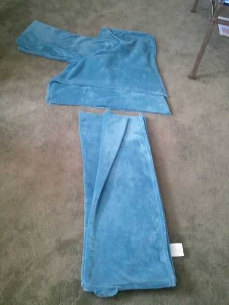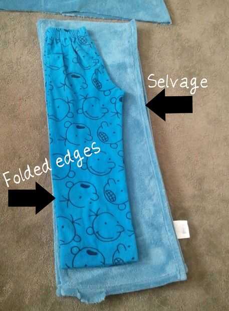 Coloque los jammies en el viaje con el lado derecho de la tela con los bordes doblados. Corte como se indica siguiendo las indicaciones en la imagen.