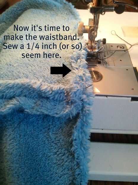 Doblar a la tela sobre un 1/4 de pulgada y coser.  Ver la imagen.