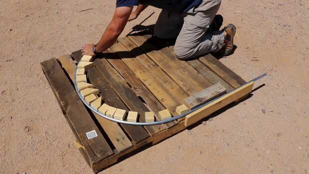 Al doblar los aros que debe en primer lugar Alinee la espera sobre marca y fijar un extremo del conducto en el lado de 'stop' de la forma. A continuación usted querrá asegurarse de que están de rodillas en el formulario o que tenga un amigo colocar en ella para evitar que se mueve mientras está doblando.