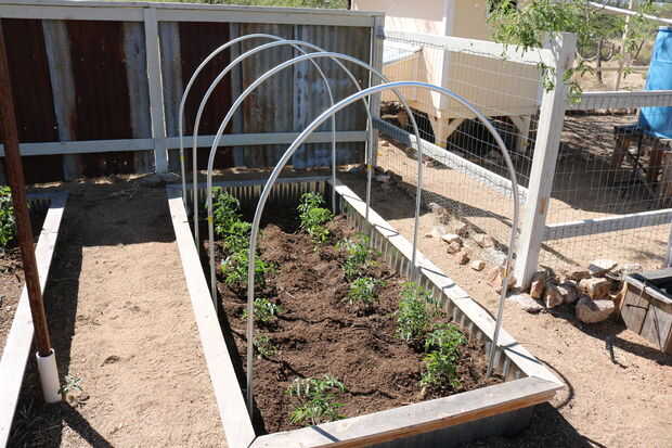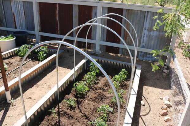 Una vez que los aros estén en su lugar ahora está listo para añadir todo lo que usted está deseando los aros para proporcionar una estructura para. Como mencioné antes, esto puede ser red bird, paño de la cortina y o de plástico para los broches de frío... o cuando es tiempo para extender su temporada de crecimiento.