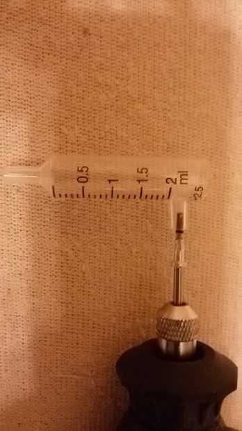 Como en parte de cono de agregado de imagen para dremel y presione en la guía en la jeringa.