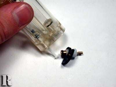 Limpie una junta tórica y la dos partes (blanco y rojo se ven imágenes) que pueden ser atornilladas a través de la goma del émbolo.