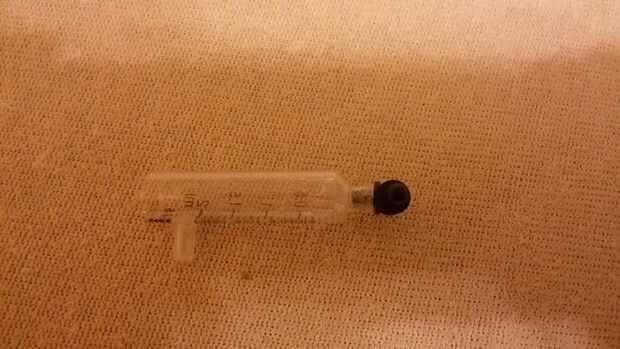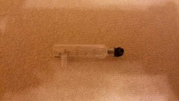 En la primera jeringa acortar la parte donde va la aguja y ampliar por lo que puede caber un conector "T" para manguera. Otra vez ajuste cómodamente, progresión lenta es clave para el éxito. Esto puede reforzarse con pistola encoladora o pegamento etc..