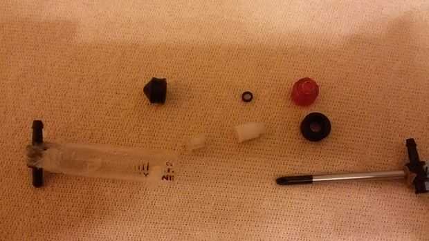 Después de que uso más ligero y calor tan plástico suaviza y forma por lo que se asemeja a la pieza original (forma y dimensión vise) donde va el émbolo. Se puso una goma del émbolo en esta parte después de ponerlo en el eje.