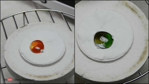 En la imagen pueden ver el cristal cuando está caliente y cuando se haya enfriado.