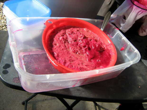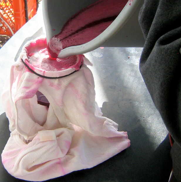 He guardado el residuo de este paso y examinó. Es una mezcla muy fina, parece lo suficientemente bueno para comer, pero no por favor; contiene muchos pedacitos muy pequeños de espina y glouchids. Por lo que sólo se agrega a la materia en el dibujo, para gotear durante la noche y hacer el jugo más podemos filtrar y terminar más tarde.
