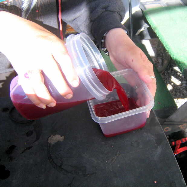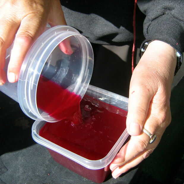 A la mañana siguiente, nos tomar el líquido que goteaba de la collader y ponerlo a través de las tres filtraciones entonces añadir el zumo acabado. Incluso he puesto unas bolsas de plástico en mis manos y colocar el contenido del dibujo en una toalla de cocina grueso y exprimido hacia fuera para sacar cada pedacito de la bondad, pero no es un movimiento para los débiles de corazón, gloquidios sabes. La pulpa de los demás ha perdido un poco de color y volumen, y vuelve a la tierra, la descarga o la pila de compost, a menos que alguien puede encontrar un uso para él con todo el los gloquidios, semillas y la celulosa. (Tuna no crece bien de semillas, en su mayoría se reproduce por gemación).