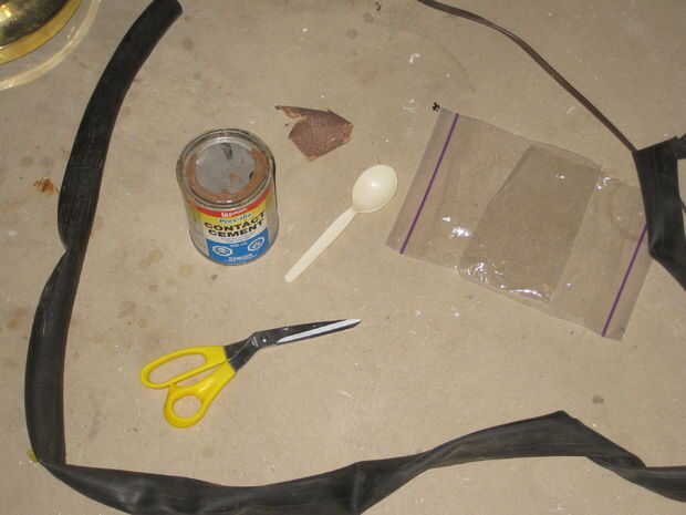 martillo o abrelatas de lata (o cincel) para deshacer y hasta la lata de cemento de contacto.