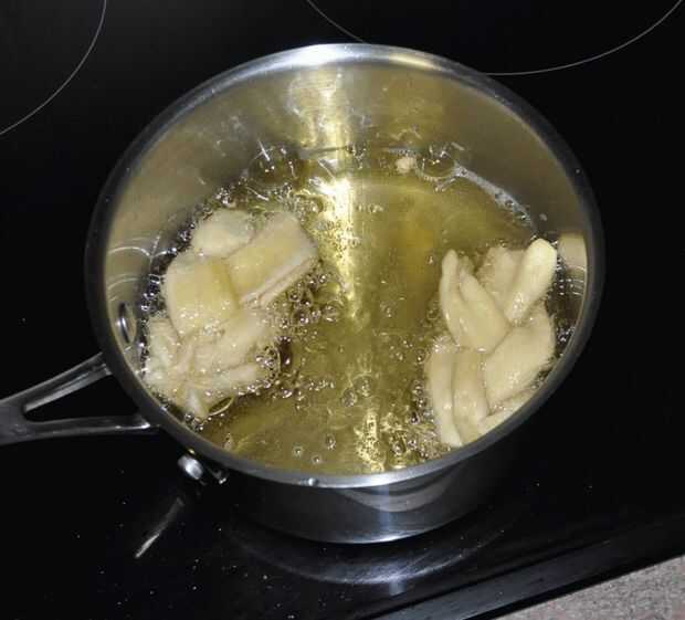 Calientan el aceite y una vez que el aceite está listo pone la materia prima "Koeksuster" en dos o tres a la vez. Dejarlos freír de 2 a 3 minutos hasta que estén dorados y luego darles la vuelta durante un minuto o dos en el otro lado. Asegúrese de que estén todas doradas redondas.