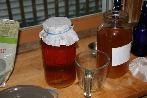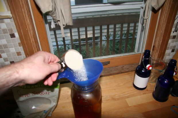 Usted desea fermentar el té durante al menos dos semanas antes de que la botella. Tres son mejor. Cuatro está muy bien. Cuanto más tiempo lo dejas ir, menos azúcar y el vinagre más.