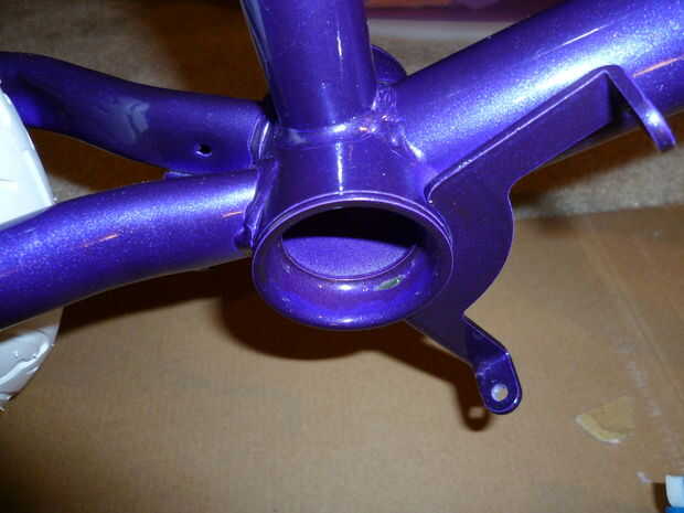 Limpiar toda la grasa de todo y poner los rodamientos, tazas, arandela y la contratuerca en alguna parte para salvaguardarlos - necesitarás les vuelva a colocar las bielas. En esta moto el borde inferior del soporte de la amable y suave por lo que solo lo dejó como era, pero si el borde de su caja de pedalier es áspero desea poner alguna cinta o un pedazo de cámara allí para mantenerlo seguro.