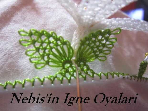 Ve iğne oyası papatyamızı 2 yaprağımızın arasına birleştiriyoruz... Aynı kabak çiçeğini yaptığımız gibi yapıyoruz...