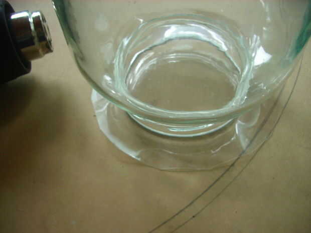 Luego poner sobre él la jarra de vidrio, boca abajo, tratando de centro de la boca dentro del círculo de PET.