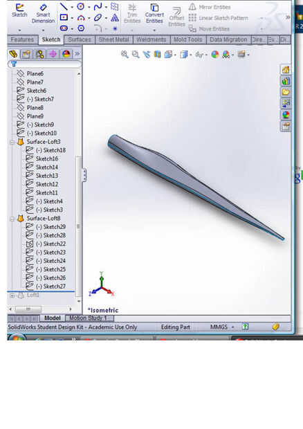 Actualmente estoy terminando dos años ingeniería curso tecnología de turbina de viento tuvimos un módulo de desingn 3d (solidworks) y para una de las asignaciones diseñado una escala hacia abajo de la lámina de turbina, imprimí y probado en el túnel