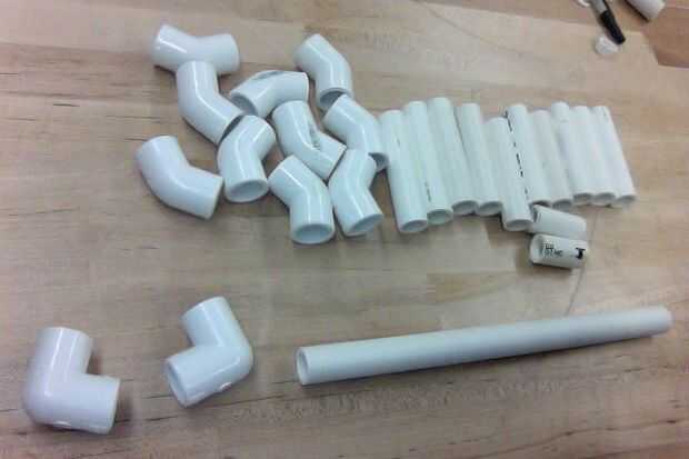 materiales:LETRA A-2: 90 grados de codo2: conectores de T4: 4 pulgadas PVC2: 6 en. PVCLETRA Z-2: 90 grados de codo2:45 grados codo2: 2 en PVC2: 6 en PVC1: 9 en PVCPaso 1: Reunir los materiales Se reúnen todos los materiales para hacer la letra APaso