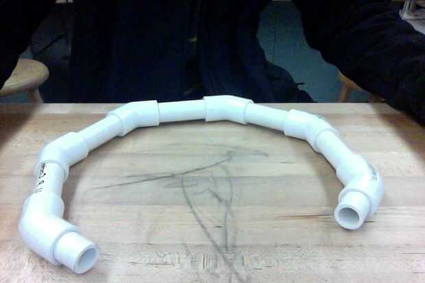 Ahora, crearemos la letra "C". Comenzar la misma manera como lo hizo al construir la letra "D" y hacer primero el semicírculo. A continuación coloque dos empalmes de 45 º hasta los confines del semicírculo. Después que conectar los dos tubos de PVC de 1.5" en los extremos de las uniones de la 45 º sólo unido al semicírculo. Finalmente Coloque las dos últimas articulaciones de 45 º en los extremos de los tubos de PVC de 1.5".