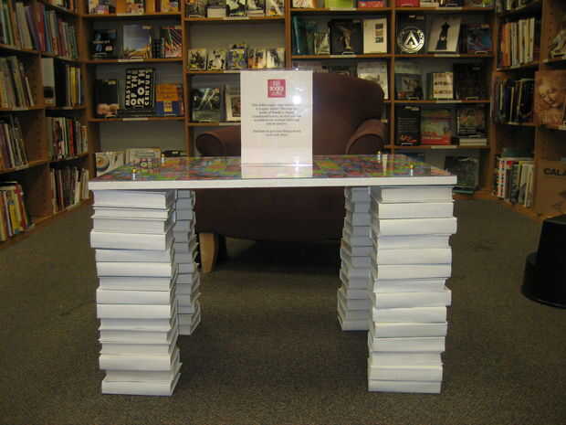 Ese bamboleo vino en práctico cuando un coche se estrelló a través de la sección de arte de la librería de que trabajo, sin embargo. Los estantes se cayeron cuando el coche llegó a través de la tabla sólo se inclinó fuera del camino como golpeó los estantes.
