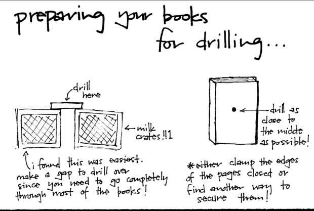 He utilizado cajas de leche como una estación de perforación, pero también puede utilizar otros dos libros con una separación entre ellos. (Imagen #1).