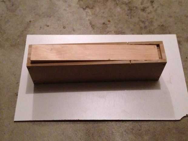 La Junta Directiva en la plantilla ahora se verá así. Cuenta que en la foto de lado 1/4 de la derecha, la Junta comienza a sumergir por debajo del nivel superficial. Esta línea intersección coincide con la altura deseada de la ranura que enrutará hacia fuera más adelante. (Por supuesto, puede hacer ajustes a la altura del profundo espaciador en su plantilla para lograr que desea punto).