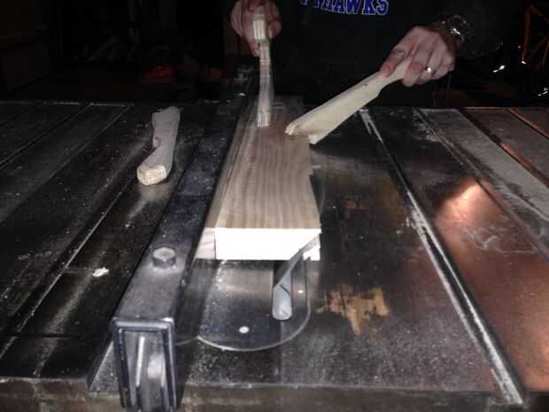 Ahora han hecho las piezas de "izquierdas" de cada pierna. Para hacer las piezas «derecha», necesita ejecutar el los restantes 24" juntas a través de la Sierra de mesa, pero de tal manera que con seguridad corte de 45 en el otro lado de la Junta.