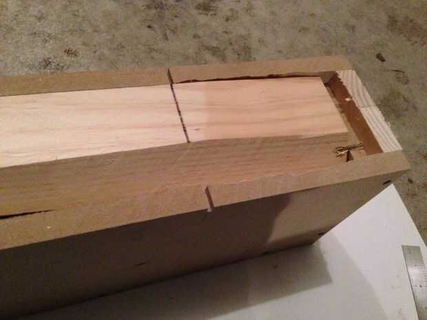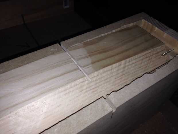 Mi bancada es 5 1/2 pulgadas de alto. Así que necesito una ranura que es al menos lo que alta. Una vez más, es más importante ser constantes que exacto, como siempre se puede recortar cualquier exceso de la parte inferior. (Untrimmed izquierda, la parte inferior de la cuña no va a ser un el ángulo correcto de todos modos, así que será necesario recortar).