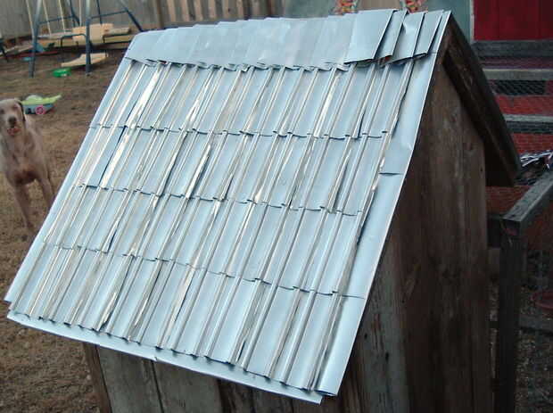 Fabricación de estos puede ser tedioso pero el resultado final es satisfactorio porque el viejo latas están cumpliendo una inmediata segunda vida. Utilizará un área de techo de 24 "x 24" de 36 a 50 latas (excepto borde de goteo y casquillos) dependiendo del espaciado vertical y de estilo con tejas; viene en latas de 900-1250 por metro cuadrado de techo (10'x 10'.)