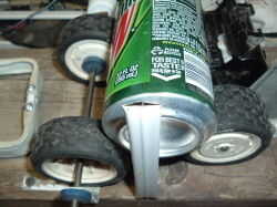 Esto obtiene fuerte, así que con guantes es importante. Utilice tijeras o tijeras para cortar la parte superior de la lata en la costura donde dobla la lata de la lata. Cortado por el centro a la parte inferior y luego cortar el fondo de la lata. Ahora debe tener una pieza rectangular de chapa de aluminio. Para facilitar la carga de trabajo, formato de estos con el tiempo obtienes las latas. Una de las fotos más abajo muestra el comienzo de una máquina de corte puede; Yo espero que funcione porque mis manos están cansadas.
