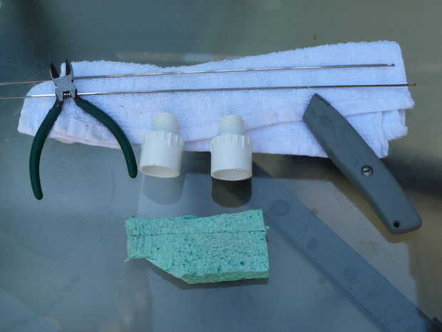 Moje la esponja con un poco de agua destilada, empuje los electrodos a través de la esponja y en el siguiente paso.