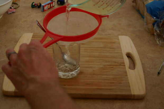 Una vez que el jugo de limón, el agua y el azúcar disuelto se enfríe, cuele en una copa.