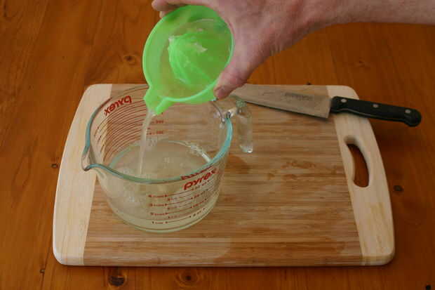 Paso 4: Verter el zumo de limón en la taza del microondas
