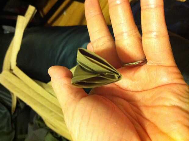 Toma cada hoja de papel de embalaje y doblez paralelo a las perforaciones, Hot-Dog estilo. Doblar por la mitad (hotdog) otra vez, desplegar para hacer un pliegue, luego doblar cada lado del pliegue. Al final debería verse como la primera foto... Luego, doblar a lo largo del pliegue. Esto crea bordes limpios, por lo que las perforaciones que no se muestran. Ajuste como usted necesita.