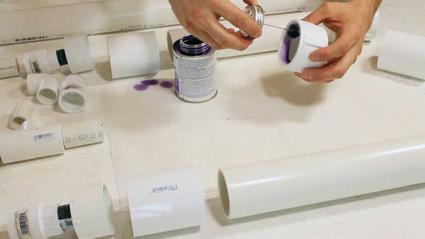 Asegúrese de leer cuidadosamente las instrucciones de la lata de cartilla y lata de cemento de PVC. Hay peligros asociados con cada uno, y atención al detalle es necesaria para conseguir una buena conexión que puede soportar 150 PSI. Recuerde, este sistema va a ser que contiene una cantidad peligrosa de la presión, así que usted querrá hacer las cosas bien la primera vez!