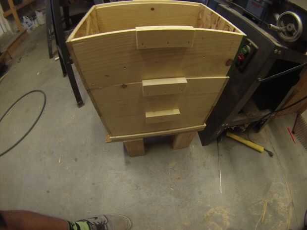 Empezó por cortar mi 1" por 6" a 15". La otra tabla que corte a 12". Necesita cortar el interior de los 15" pieza para que los marcos sentarse a ras con la parte superior del marco. No necesita cortar la ranura más profunda, pero es más agradable para las abejas cuando cambie los marcos por lo que no consigue machacados. Esto también parece autas explicativas, grapas la caja juntos. No se olvide de pegamento, el pegamento que utilizo para esto es apretado vínculo 3 para uso al aire libre. Una cosa que puedes hacer para facilidad de uso se pone mangos en. Pongo mis aproximadamente 1/2" sobre la parte superior de la caja para que las cajas no volcar en el viento.