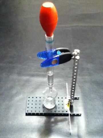 Pinza de bureta (yo usé un clip magnético chip modificado con un Erector set dos agujeros derecho ángulo — se une al soporte con un tornillo de mariposa caso ordenador y Erector set tuerca)