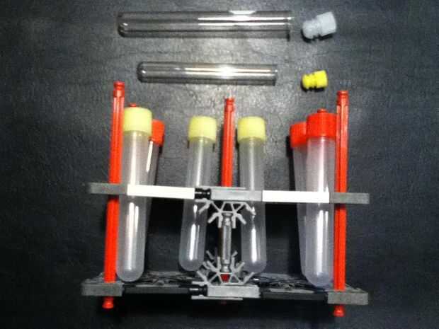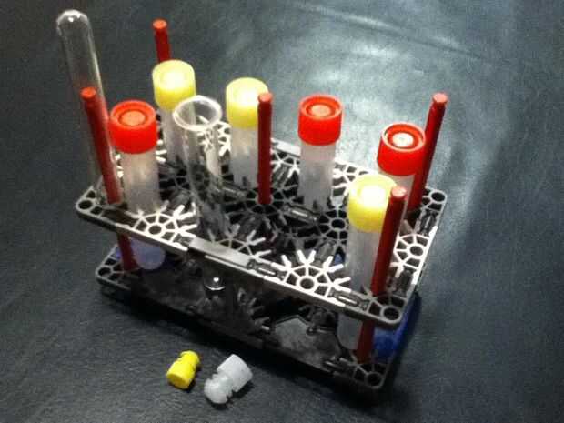 a menudo veo K'nex establece en tiendas de segunda mano como Goodwill o Salvation Army, así que decidí ver si K'nex puede ser cooptado para la ciencia. Este es un bastidor de tubo de ensayo que construido con K'nex.