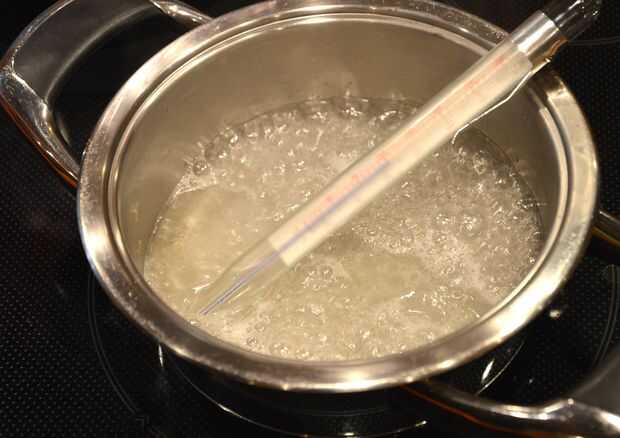 Una vez que la temperatura del jarabe de azúcar en la olla llega a 105° C, empezar a revolver la mezcla rápidamente. Cuando el almíbar llega a 115° C, tomar la olla de la estufa y lentamente deje ejecutar en las batidas de huevo agitando estos. Continuar revolviendo para las claras de huevo mezcladas con el almíbar durante unos 10 minutos, esto se enfríe las claras de huevo batidas.