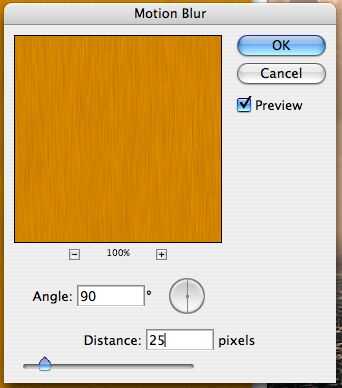 Añadir un desenfoque de movimiento. Ir a filtro > Desenfoque > Desenfoque de movimiento. Utilice la siguiente configuración. Ángulo de 90 grados, distancia 25 píxeles.
