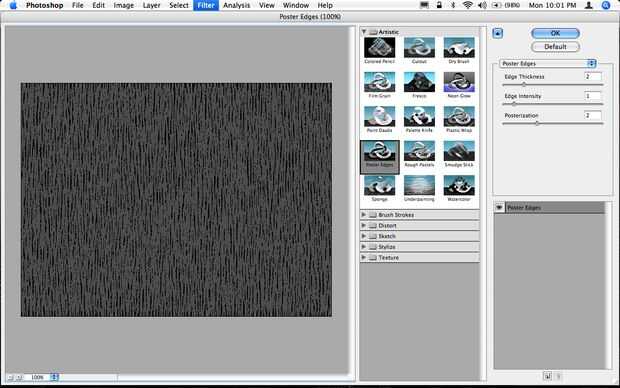 Añadir los bordes del cartel. Ir a filtro > artístico > bordes de cartel. He utilizado la configuración predeterminada que son 2 de espesor de borde, borde intensidad 1, 2 de posterización.