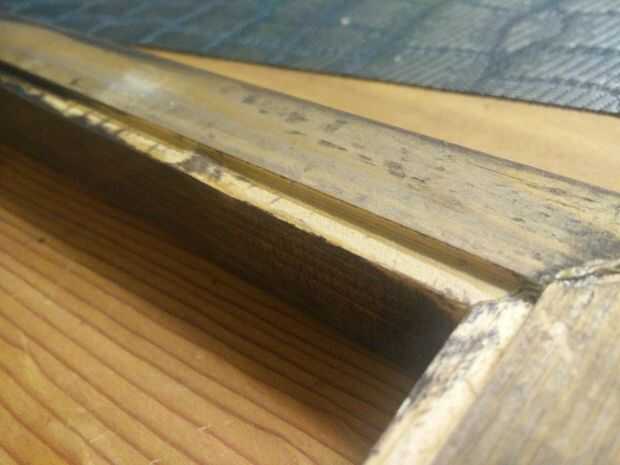 Entonces pegué todas las tablas juntas al mismo tiempo, optan por utilizar 3 abrazaderas de inglete y mis manos para mantenerlo todo junto. Una técnica que es útil es recordar que la madera es increíblemente absorbente. Esto significa que si pones pegamento en los extremos - una gran cantidad de ella se consigue absorbido por la Junta que no pegan las tablas. Para combatir esto, poner pegamento en los extremos y no pegan juntos - en su lugar, espere 5 minutos. Casi todo el pegamento va a desaparecer en el grano. Ahora poner más pegamento y les pegan, esto debe formar un vínculo mucho más fuerte. Si eres experto, también puede utilizar un cortador de la galleta o corte una mortaja y reforzar con refuerzos internos. Refuerzo externo también es una buena opción - me perezoso y lo hizo sin refuerzo. No ha roto todavía, pero sin garantías.