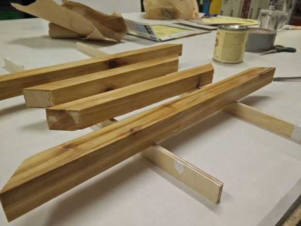 Por último, todas las uniones de inglete se cortaron en la tronzadora. Estaba un poco impreciso con todo así que me tomó un poco de ensayo y error para conseguir todo lo que ajuste correctamente. Usé algunos relleno de madera para arreglar mis errores. Esto puede haber sido porque los consejos no fueron perfectamente cuadrados (tengo pude utilizar la Sierra de mesa o prestado el uso de un carpintero para ser más precisos - para la próxima vez supongo)