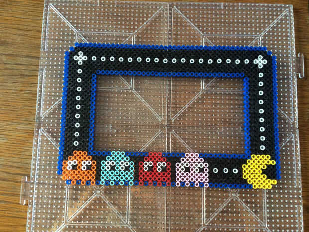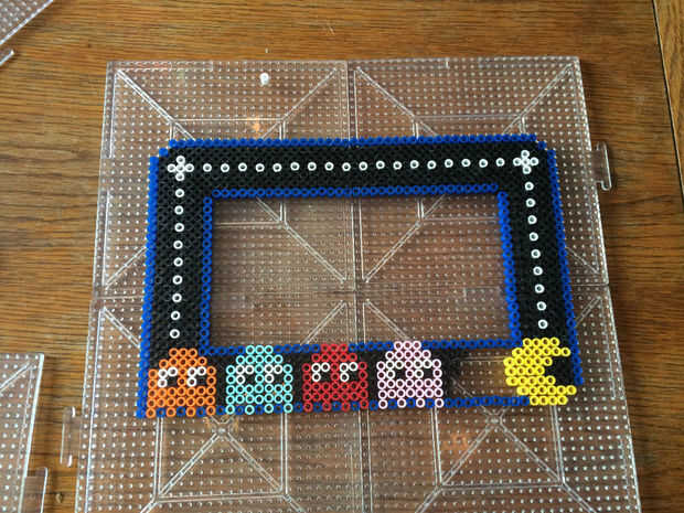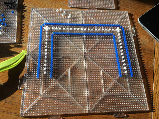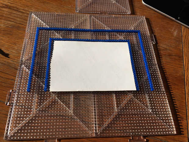 Para el paso dos, siguiendo su patrón decidió crean el contorno con el color correcto. Aquí utilicé una imagen de 5 por 7 para evitar así que sabía el tamaño del marco. Por supuesto usted puede jugar con tamaños para satisfacer sus necesidades. Tuve que volver y llevar unas filas después de que el esquema fue terminado para acomodar el diseño en la parte inferior de este marco particular. Cosas como que van a suceder, no se desanime cuando las cuentas no coinciden perfectamente. Jugar con el patrón un poco hasta que ajuste a su gusto.