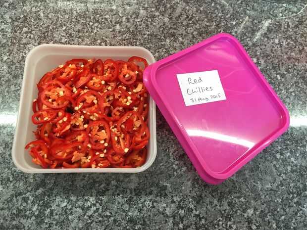Utilizar el procesador de alimentos para rebanar los chiles, luego utilizarlos congelados en curries y en pizzas.