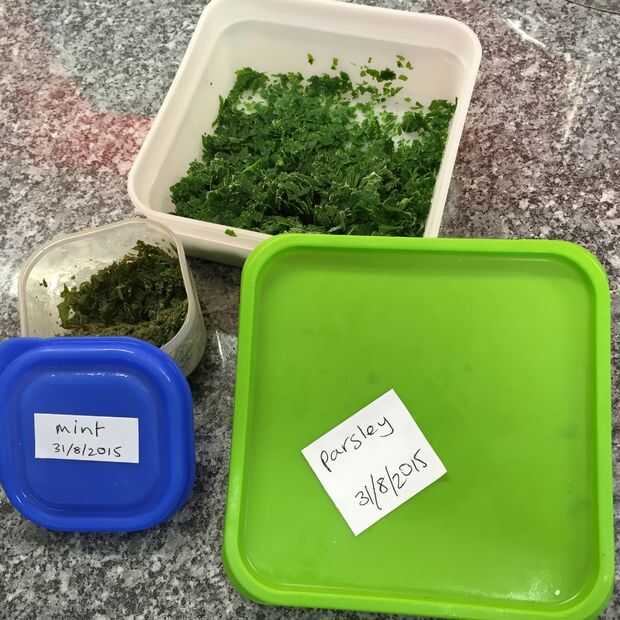 Mantener siempre cilantro y perejil y congelación de eneldo y menta cuando los tengo de sobra.