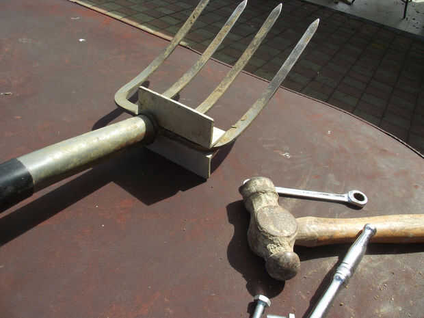 no tenemos suficiente espacio de pared del garage para guardar herramientas de jardín de mi esposa, sobre todo, no de la manera tradicional donde cada uno está plana contra la pared y al lado de otros.Tomé mi inspiración desde el cartel marcos de pan
